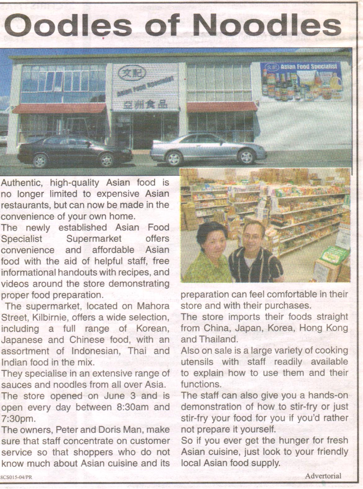 Asian Food Specialist, an Asian Food Supermarket that is situated in the Eastern Suburb of Kilbrinie. We offers a wide range of Asian foods and cooking essentials including condiments, rice, noodles, cooking utensils, snacks, drinks and import beers. Majority of our products are imported directly from Asia with a small portion of fresh products locally supplied.